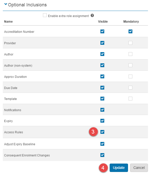 Note that when this field is blank, all users will have self-enrolment access to this Catalogue Item.