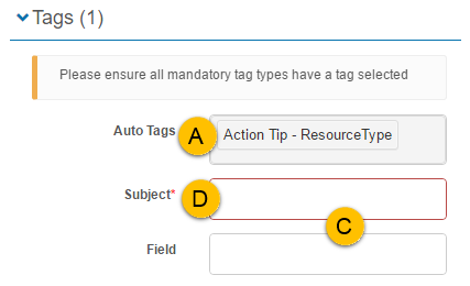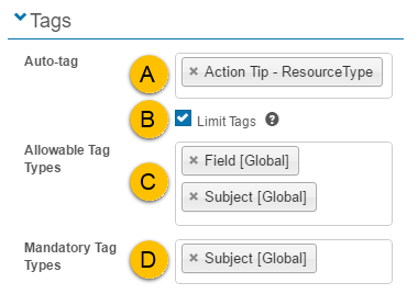 When editing the Catalogue Item Tags section based on the above settings, it will appear like this.