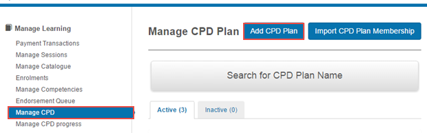 - Click the Add CPD Plan button. The New CPD Plan screen displays.