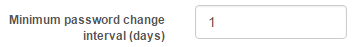 The number entered into this field limits the time the Users must wait between changes to their password. For example an interval of ‘1’ day would limit a User to 1 password change per day and an interval of ‘2’ would limit a User to 1 password change every 2 days.