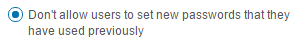 This option will restrict a User from reusing a password. If they attempt to reuse a password they will encounter the below warning.