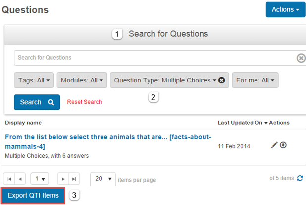 All of the QTI compliant Questions in an Assessment Module can be exported directly from the Module’s details page.