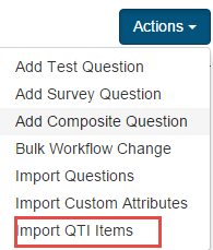 Navigate to Design > Questions and select Import QTI Items from the Actions drop-down.