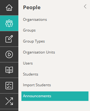 You can also access announcements by adding this to the end of your site URL: /organisation/announcement/index.