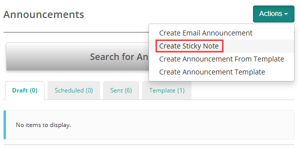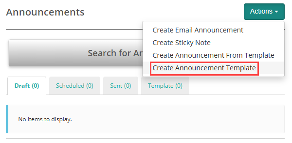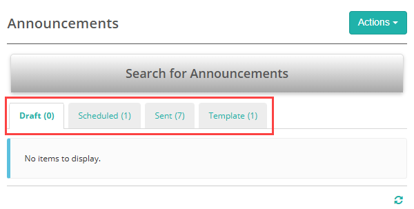 Use the filter tabs to view Drafts, Scheduled and Sent announcements, as well as Templates.