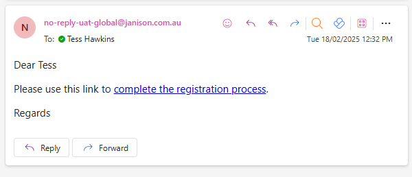 Links.AuthActionLink generates a clickable password reset link, using customisable text, Complete the registration process. Administrators can modify this text through the String Resources feature. Read more about string resources here.