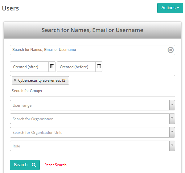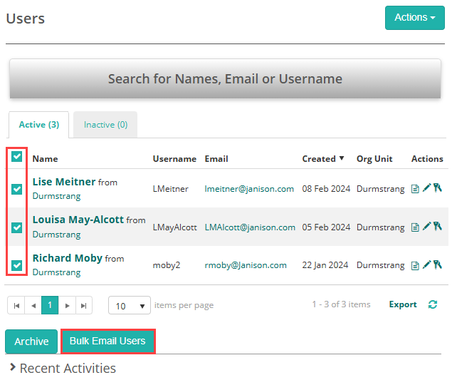 Use the checkboxes in the left column to select users. To select all users on the page, check the topmost checkbox.