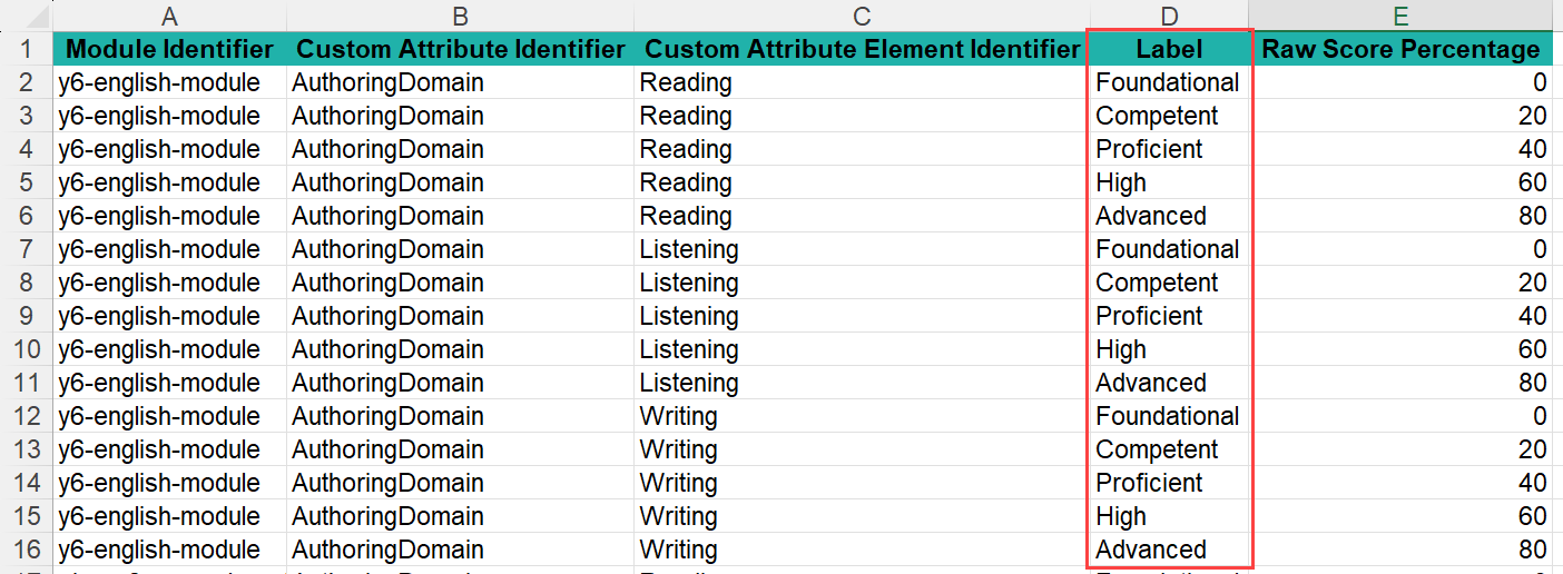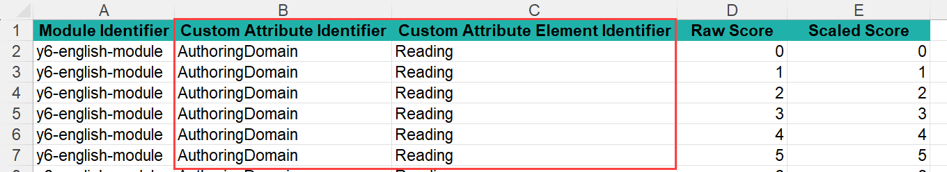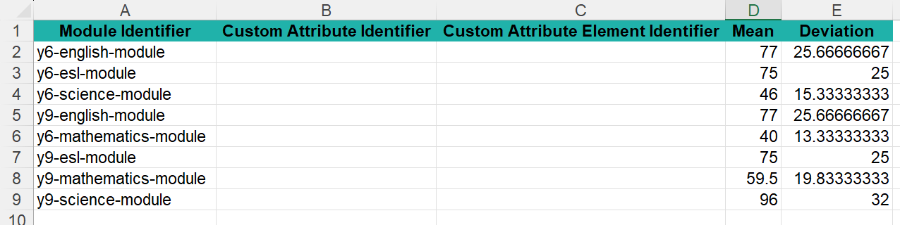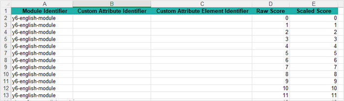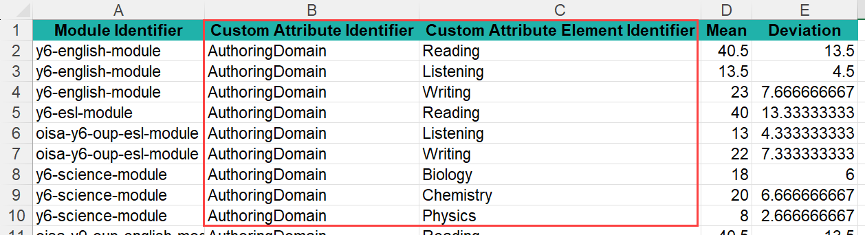 The system will populate the template with Custom Attribute columns relating to the custom attribute you selected. Below is an example of the template.
