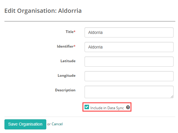 Open the relevant organisation in edit mode, select the Include in Data Sync option, and then save your changes.