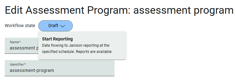 When you’re ready to begin reporting, set the workflow state from Draft to Start Reporting. This option is available at the top of the page.