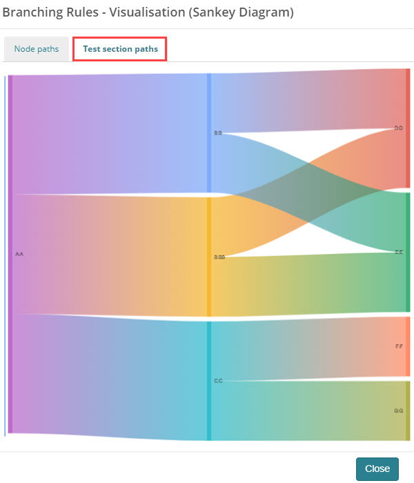Once you have added sections to a branching test, you need to set up the structure of nodes and branching rules.