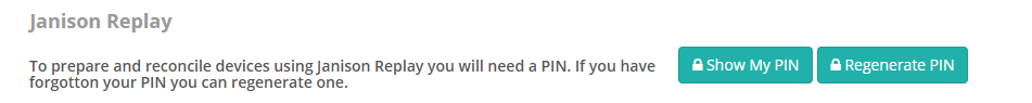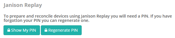 The Janison Replay section provides access to your PIN which will be needed to prepare or reconcile Replay. If you already have a PIN you can view it here or regenerate another PIN.