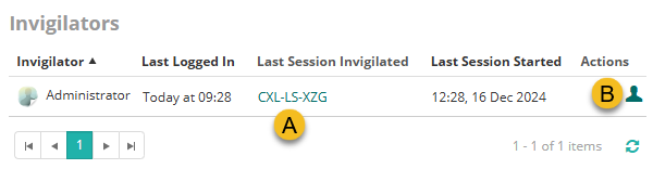 ASelect the link under Last Session Invigilated to open the Test Session Dashboard.