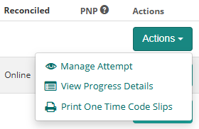 EPrint One-Time Code Slips: This icon in the Actions column lets you print one-time code slips for candidates.