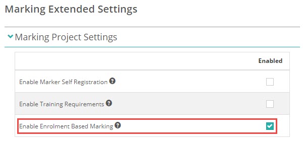 In the Marking Project Settings section, select Enable Enrolment Based Marking.