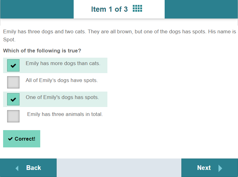 Click the link below to take an example test using the Janison test player. Provide responses to the test items and submit your test by selecting Finish, you will then be taken to the candidate feedback screen to review your results and feedback.