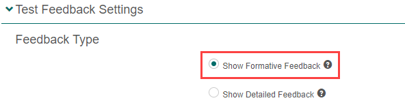 Navigate to Settings > Test Delivery Settings and open the Test Feedback Settings section.