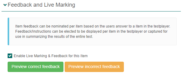 Feedback and live marking must be enabled and authored for the test item. Read more.