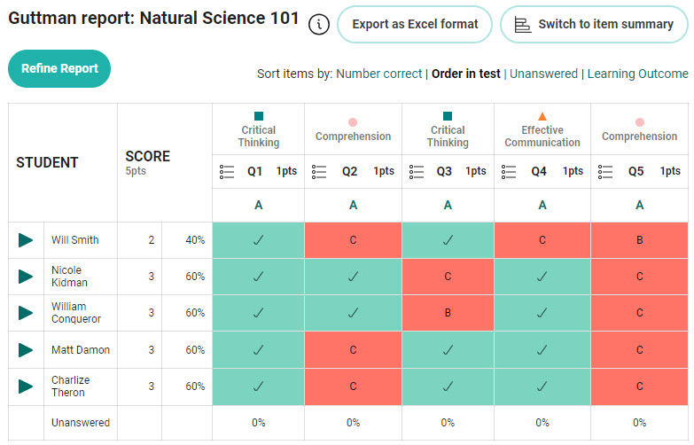 By presenting a clear hierarchy of test items, the Guttman report helps educators and evaluators assess the reliability and validity of the test and identify areas of strength and weakness in the test-takers’ knowledge or skills. This information aids in making informed decisions about test design, item improvement, and educational interventions.