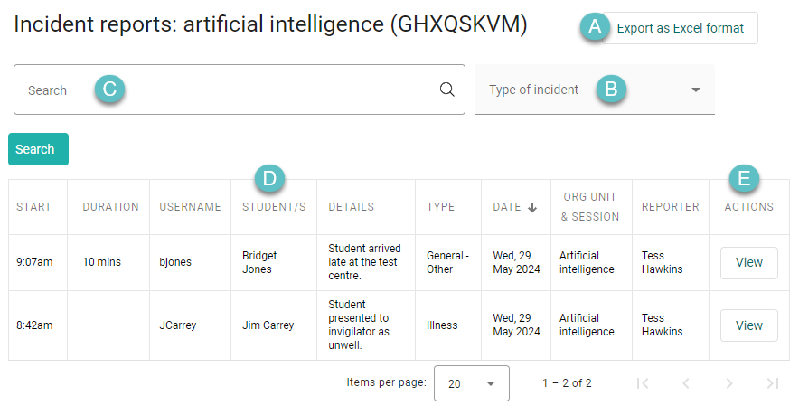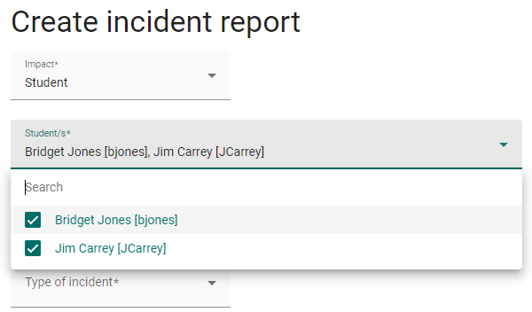D. The Student/s column will reflect the ‘Impact’ selection on the ‘Create incident report’ screen. If ‘Student’ was selected, the column will display the test-taker/s names. If ‘Test Session’ was selected, the column will display ‘All session students’. If ‘Org Unit’ was selected, the column will display ‘All centre students’.