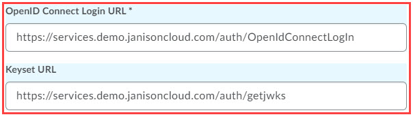 - Issuer value into the Issuer field. This is the url used to identify the issuer platform and is used for Janison Insights to check the request has come from a known Issuer.
