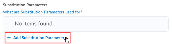 - Substitution parameters allow specific values to be dynamically substituted for custom parameters requested by a third-party tool.