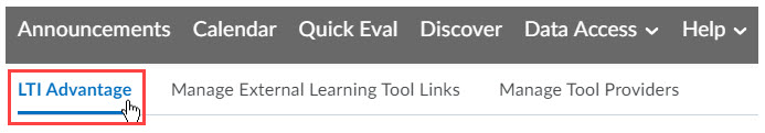 - Select the Admin Menu and then choose External Learning Tools under the Organization Related heading.