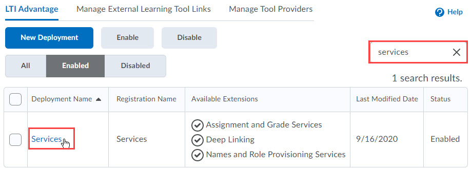 - If you are still on the Brightspace Registration Details screen, select View Deployments.