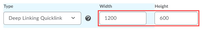 - Enter a values in the Width and the Height fields to set the size of the link.