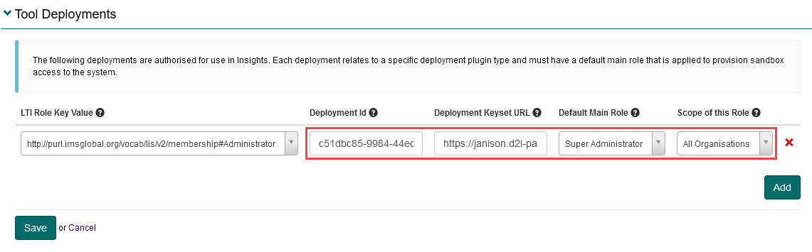 Next the Brightspace deployments must be authorised for use in Janison Insights.
