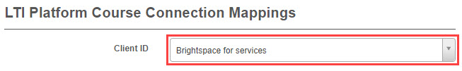 - The LTI Platform Course Connection Mappings screen displays. Select the required Client ID from the Client ID drop-down field.