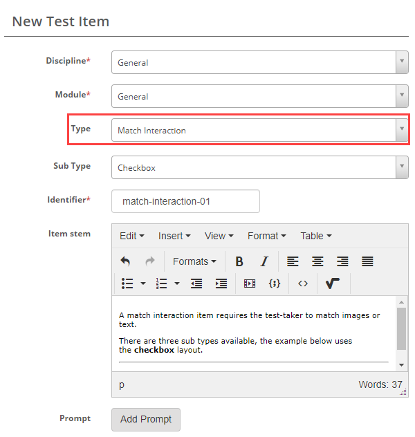 Select Match Interaction as the item type.