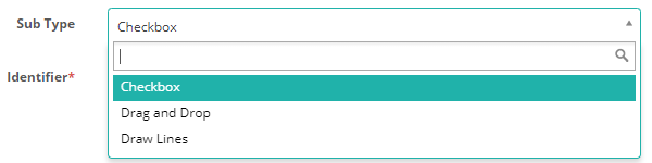 Three Sub Types are available; Checkbox, Drag and Drop, and Draw Lines. Each sub-type changes the layout of the item. Open the practice test at the top of the page to view the layout of each sub type.