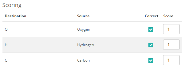 With this scoring type, additional scoring options will become available to the item author, allowing them to add a score for each response.