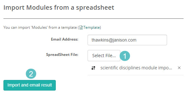 Select Import Module from spreadsheet from the Actions drop-down.