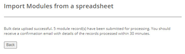 You will see onscreen feedback confirming that the import has been submitted for processing.
