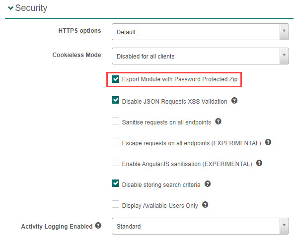 Select the option Export Module with Password Protected Zip.