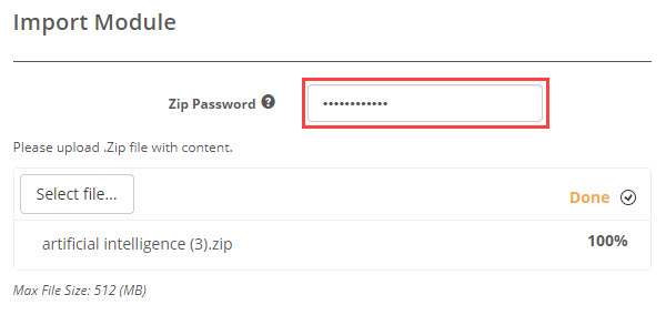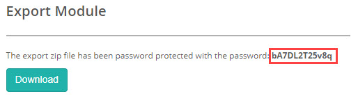 With this setting active, when you export the module, a screen displays with a password and button to Download the file.