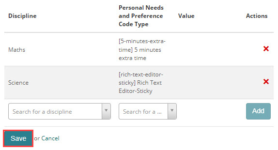 Select the Discipline, Personal Needs and Preference Code Type and then select Add.