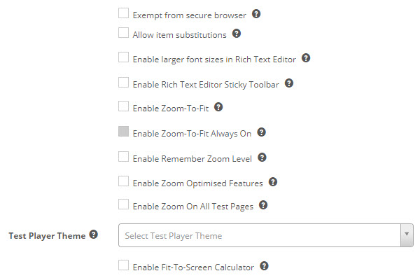 If checked, the zoom tool will be available on all pages throughout the test while the test-taker is logged in.