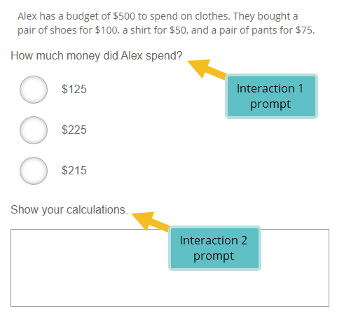 In composite items, authors can use prompts as the item stems for interactions as highlighted in the screen capture below. You can read more about this in our document on composite items.