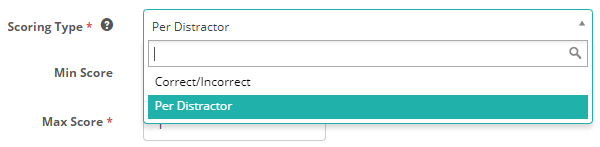 Scoring Type – The options are Correct/Incorrect and Per distractor. See Setting scores and marking below to learn more about this.