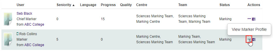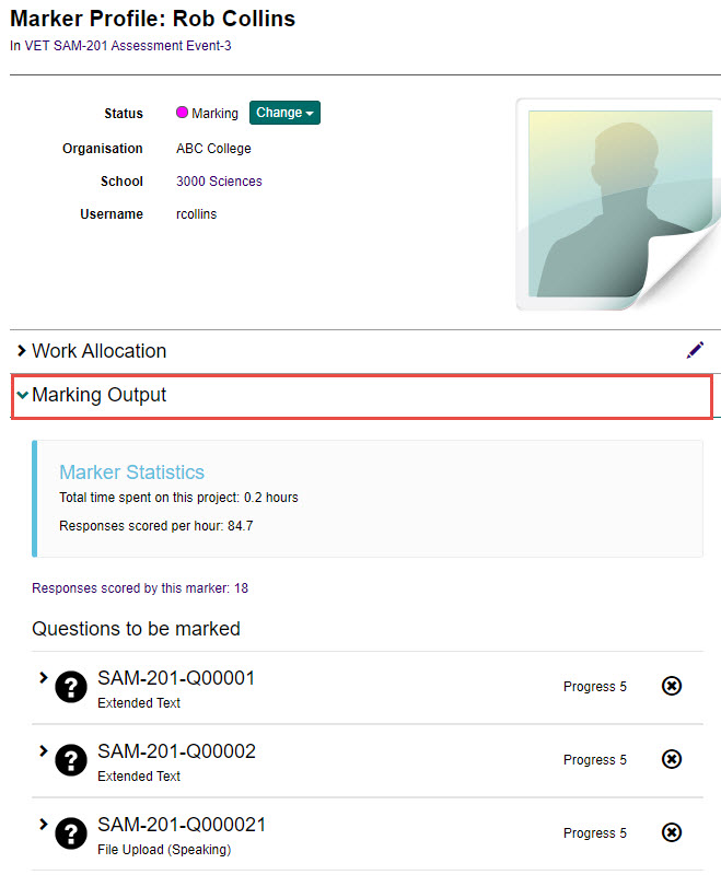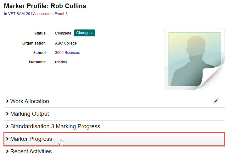 When a Marker commences the main marking phase of a marking project, a section appears in their profile which details the result of their marking.