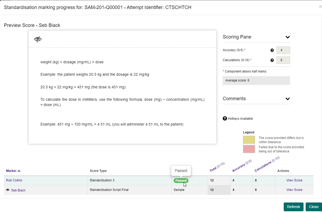 If your scores fall outside of the tolerance, the system will flag this to the Chief Marker. They may contact you to discuss the discrepancy or pause your marking account. This ensures consistency across Markers so that candidates are not advantaged or disadvantaged regardless of which examiner marks their work.