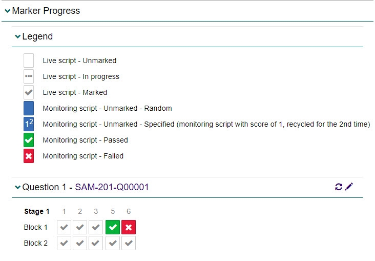 When a Marker commences S3, a section appears in their profile which details the result of their training.
