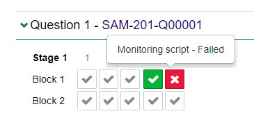 Selecting a Passed or Failed icon in a question opens the progress screen which provides more details.