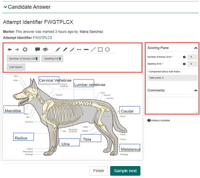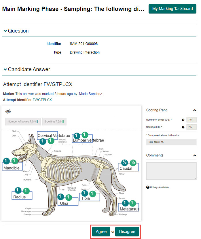 Selecting Disagree unlocks the marking features and allows you to annotate, enter new scores and comments as appropriate.