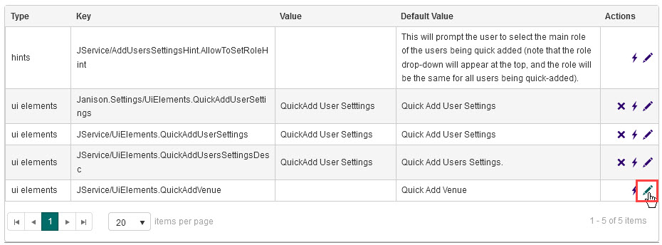 - Select the Edit icon or the Quick Edit icon next to the required string resource in the list.