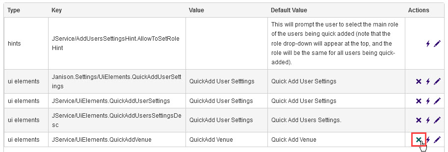 Customised string resource values can be deleted. This reverts the string resource back to the system default value.