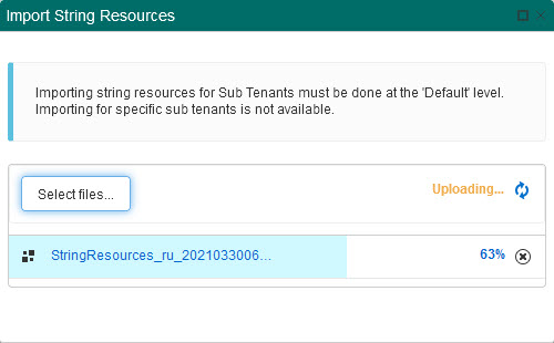 - The Import String Resource popup displays. Select Select files and choose the XML file to import.